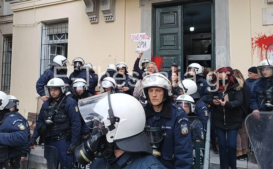 Τα επεισόδια ξεκίνησαν στις 8:30 μεταξύ συγκεντρωμένων και αστυνομικών δυνάμεων στην είσοδο των δικαστηρίων.