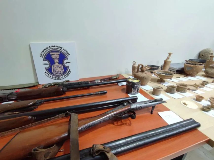 Στη σύλληψη τριών ατόμων που κατηγορούνται, κατά περίπτωση, για παραβάσεις του νόμου περί προστασίας των αρχαιοτήτων και του νόμου περί όπλων, προχώρησε η Υποδιεύθυνση Προστασίας Περιουσιακών Δικαιωμάτων, Πολιτιστικής Κληρονομιάς και Περιβάλλοντος της Διεύθυνσης Ασφάλειας Αττικής. Ειδικότερα, σύμφωνα με την ΕΛΑΣ, έπειτα από αξιοποίηση πληροφοριών σχετικά με την κατοχή αρχαίων αντικειμένων από άτομα τα οποία είχαν προγραμματίσει συναντήσεις για την πώλησή τους, πραγματοποιήθηκε επιχείρηση, χθες το μεσημέρι, Κυριακή 26 Μαρτίου, σε περιοχή της Κορινθίας, κατά την διάρκεια της οποίας συνελήφθησαν δύο Έλληνες, ηλικίας 42 και 56 ετών, καθώς και ένας 35χρονος Ρουμάνος.