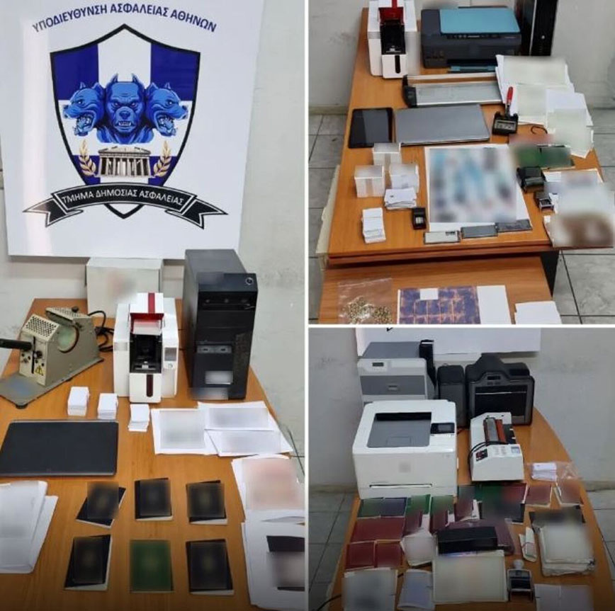 Σύμφωνα με την Αστυνομία η εγκληματική οργάνωση διέθετε επαγγελματικές δομές κατάρτισης πλαστών έγγραφων και μέχρι στιγμής έχουν βρεθεί 5 εργαστήρια με πλήθος πλαστών εγγράφων και σύνεργα κατάρτισης αυτών, ενώ εντοπίστηκαν και 10 διαμερίσματα φιλοξενίας υπό αναχώρηση αλλοδαπών.