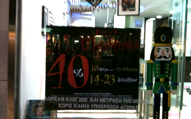 Στην οικονομική κρίση οι καταστηματάρχες απαντούν με προσφορές. Εμπορικά καταστήματα που πριν ένα χρόνο, τέτοιες μέρες γέμιζαν από κόσμο που αγόραζε τα τελευταία χριστουγεννιάτικα δώρα, τώρα έχουν… νεκρώσει. «Κανένας δεν έρχεται να ψωνίσει» λέει υπάλληλος σε γνωστό κατάστημα ένδυσης στο κέντρο της Αθήνας στο newsbeast.gr.