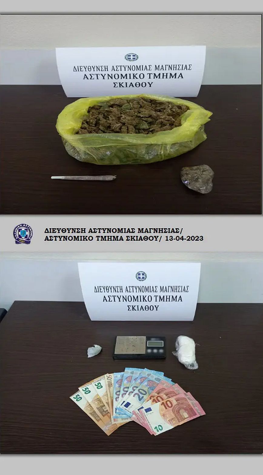 Συνελήφθησαν τη Μεγάλη Πέμπτη (13-04-2023) το πρωί στη Σκιάθο, από αστυνομικούς του Αστυνομικού Τμήματος Σκιάθου σε συνεργασία με αστυνομικούς του Τμήματος Δίωξης Ναρκωτικών της Υποδιεύθυνσης Ασφάλειας Βόλου, 2 αλλοδαποί, σε βάρος των οποίων σχηματίστηκε δικογραφία για παράβαση της νομοθεσίας περί ναρκωτικών.