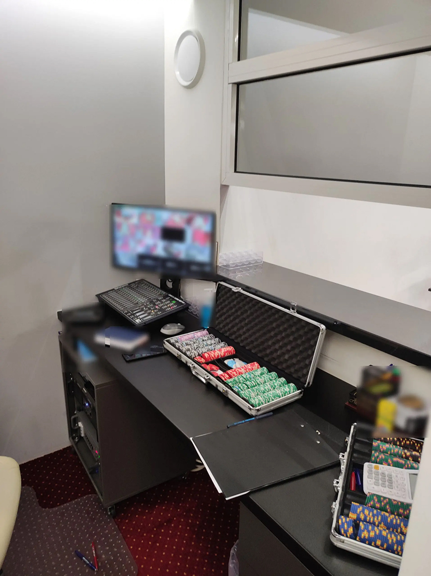 Σύμφωνα με την ΕΛΑΣ κατά τον έλεγχο διαπιστώθηκε να διεξάγονται παράνομα τυχερά παίγνια, ενώ κατά την έρευνα που ακολούθησε στους χώρους του καταστήματος, βρέθηκαν και κατασχέθηκαν: 3 κεντρικές μονάδες ηλεκτρονικού υπολογιστή (server), 4 επιτραπέζιες ρουλέτες, 6 τραπέζια χαρτοπαιξίας, καταγραφικό και 12 κάμερες, μάρκες, τραπουλόχαρτα και 11.865 ευρώ.