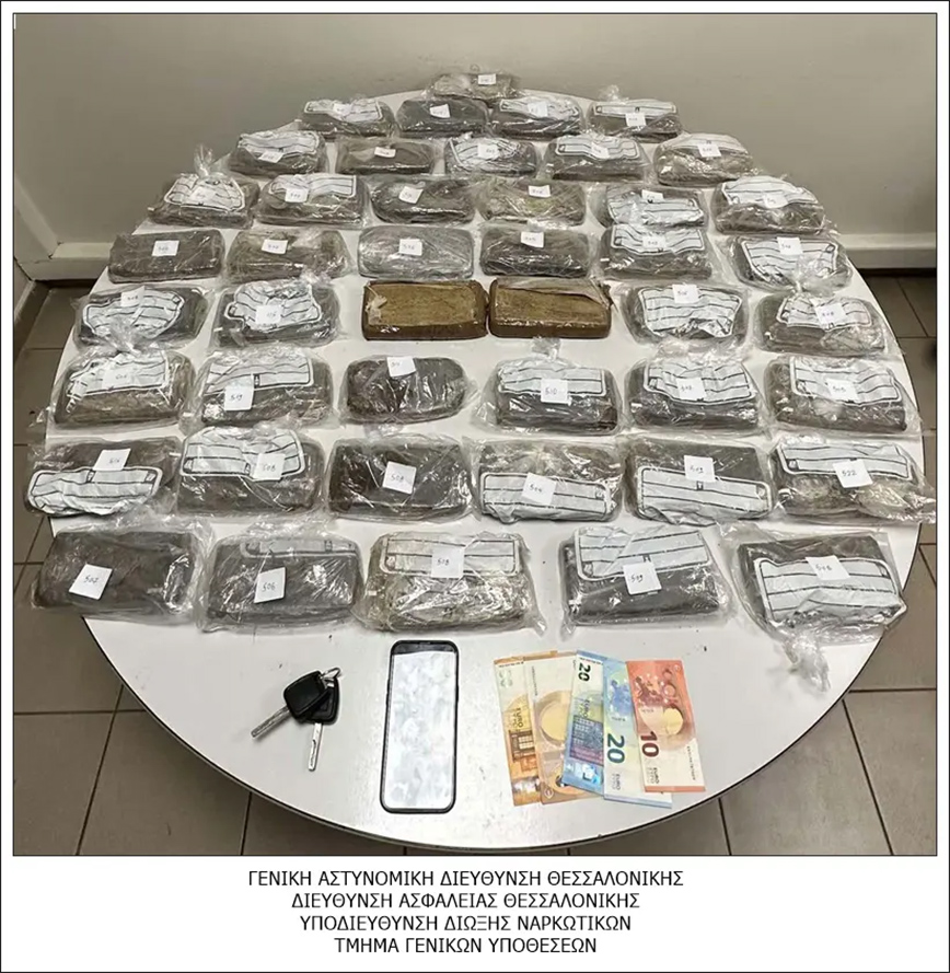 Όπως προέκυψε από την έρευνα, ο άντρας, ο οποίος παρέλαβε τα ναρκωτικά από την Αθήνα και είχε σκοπό να τα διακινήσει στο Νομό Θεσσαλονίκης, μετέφερε με όχημα συνολικά 22 κιλά και 883 γραμμάρια ηρωίνη, μοιρασμένα σε 45 δέματα, τα οποία εντόπισαν αστυνομικοί της Υποδιεύθυνσης Δίωξης Ναρκωτικών σε ειδικές κρύπτες πίσω από το ντουλαπάκι του συνοδηγού και στο πίσω μέρος του ηχοσυστήματος.