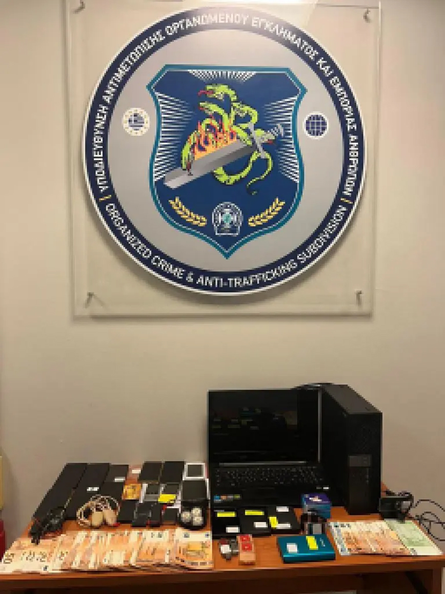 Από τις έρευνες που πραγματοποιήθηκαν, εντοπίστηκαν και κατασχέθηκαν, μεταξύ άλλων, το χρηματικό ποσό των 5.570 ευρώ, 7 μικροκάμερες, 9 ακουστικά τύπου «ψείρα», 2 πουκάμισα με ενσωματωμένη στο εσωτερικό μέρος τους και στο αριστερό μανίκι ηλεκτρονική συσκευή με μικροκάμερα, καθώς και πλήθος καρτών SIM, usb, tablet.
