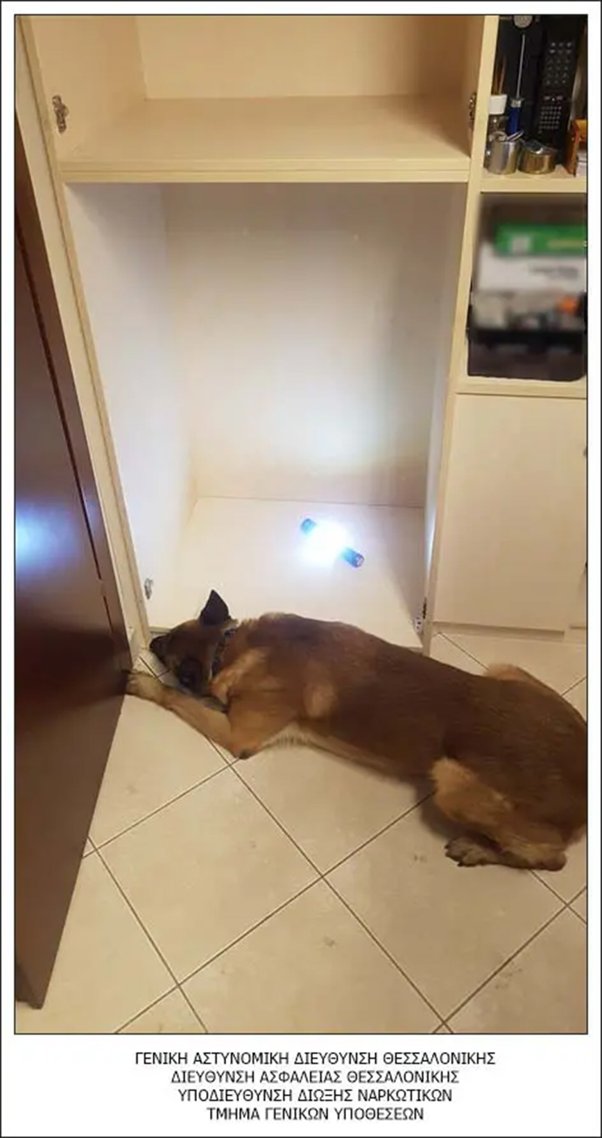 Σε ειδική κρύπτη πίσω από εντοιχισμένη ντουλάπα, εντός επιχείρησης στον Εύοσμο Θεσσαλονίκης, εντόπισαν αστυνομικοί σκύλοι ποσότητα κοκαΐνης σχεδόν 6 κιλών, ναρκωτική ουσία, που σύμφωνα με την ΕΛ.ΑΣ., συνδέεται με το πολυμελές κύκλωμα, το οποίο εξαρθρώθηκε τον περασμένο Μάιο και βρίσκεται πίσω από τη μεταφορά δύο μεγάλων παρτίδων κοκαΐνης, 104 και 161 κιλών, αντιστοίχως, από τη Λατινική Αμερική, μέσα σε κοντέινερ με μπανάνες.