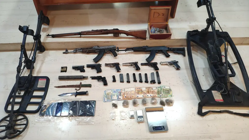 Συγκεκριμένα, σήμερα σε περιοχή του δήμου Αγίου Βασιλείου συνελήφθησαν έξι άτομα – τρεις ημεδαποί και τρεις αλλοδαποί. Η επιχείρηση διενεργήθηκε μετά από αξιοποίηση στοιχείων, και άμεσα πραγματοποιήθηκαν έρευνες στις οικίες των δραστών, όπου βρέθηκαν και κατασχέθηκαν συνολικά, «τρία πολεμικά τυφέκια, έξι πιστόλια, δέκα γεμιστήρες, χρηματικό ποσό 1635 ευρώ προερχόμενο από παράνομες δραστηριότητες, 35,2 γραμμάρια κάνναβης, τρεις ηλεκτρονικές ζυγαριές ακριβείας, 29 φυσίγγια διαφόρων τύπων και διαμετρημάτων, ξιφολόγχη πολεμικού τυφεκίου, μαχαίρι, σιγαστήρας όπλου, εξαρτήματα όπλου, τρεις ανιχνευτές μετάλλων, οκτώ κινητά τηλέφωνα και μικροποσότητα κοκαΐνης».