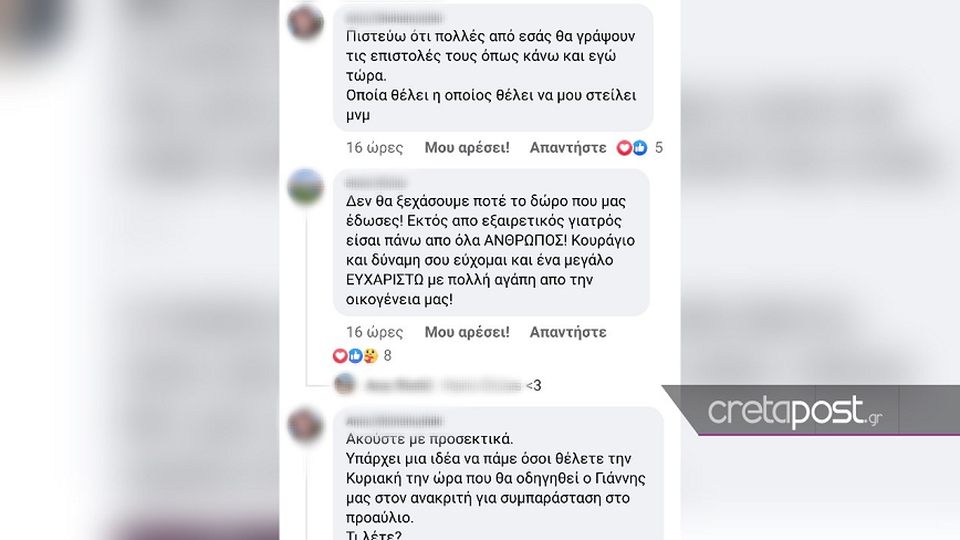 Το cretapost.gr σε επικοινωνία που είχε μαζί τους αναφέρθηκε πως σχηματίζεται μία πρωτοβουλία που ξεπερνά το κλασικό επίπεδο της επικοινωνίας, οι γυναίκες αυτές έχουν συλλέξει επιστολές συμπαράστασης και τις έχουν παραδώσει στον δικηγόρο του γυναικολόγου.