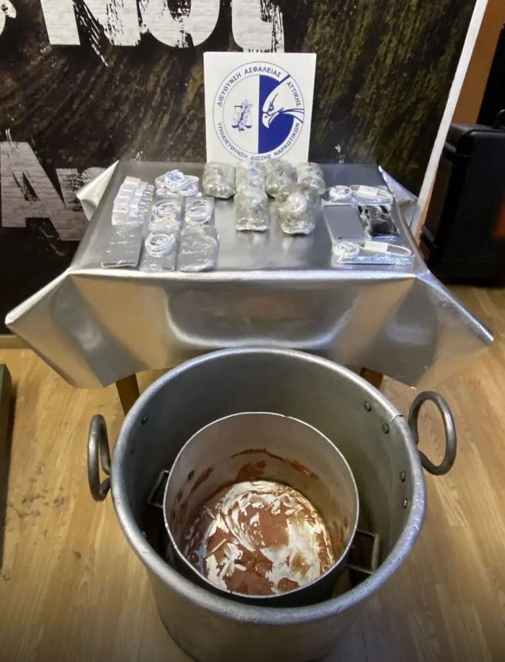 Κατά την επιχείρηση εντοπίστηκε μέσα στο υπηρεσιακό φορτηγό μια μαγειρική κατσαρόλα με διπλό πάτο που περιείχε: