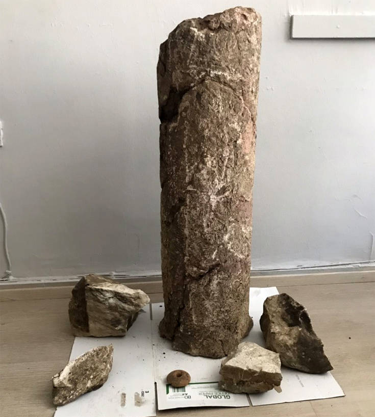 - τμήμα μαρμάρινου κίονα (σωζόμενου ύψους 90 εκατοστών και διαμέτρου 26 εκατοστών), το οποίο χρονολογείται μεταξύ του 2ου και 5ου αιώνα μ.Χ,