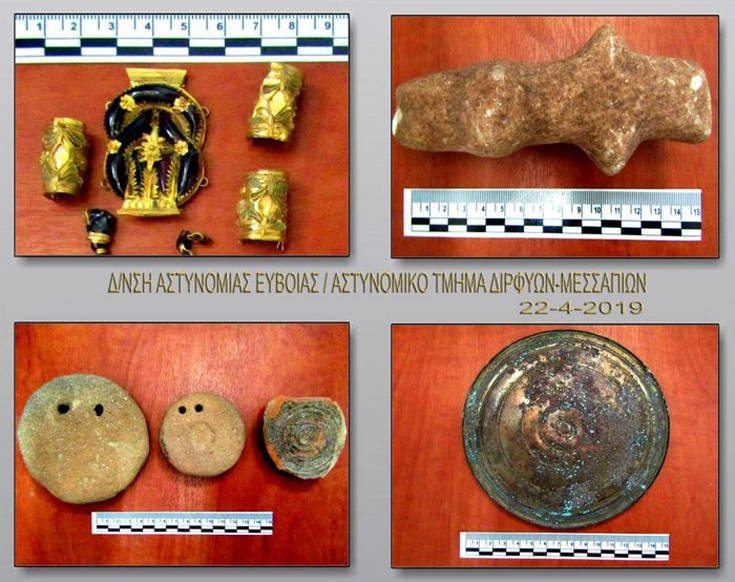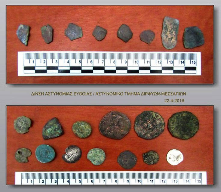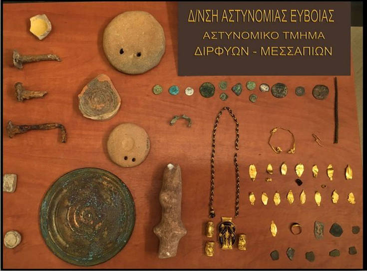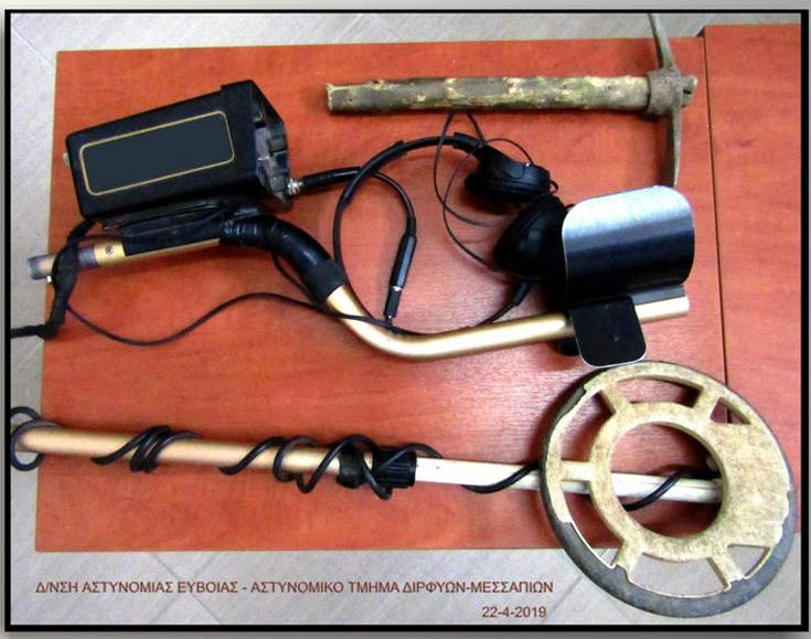 Από αστυνομικούς της Ομάδας Ασφάλειας του Αστυνομικού Τμήματος Διρφύων – Μεσσαπίων Ευβοίας, συνελήφθη χθες (22-04-2019) το πρωί σε Δημοτικό Διαμέρισμα της ανωτέρω περιοχής, ένας 59χρονος ημεδαπός, κατηγορούμενος για παράβαση νομοθεσίας περί προστασίας αρχαιοτήτων και εν γένει της πολιτιστικής κληρονομιάς.