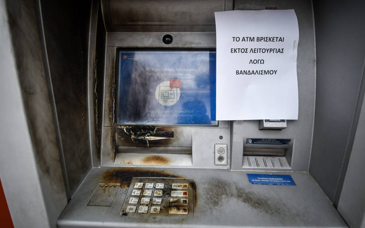 Εμπρηστικές επιθέσεις σε τέσσερα μηχανήματα αυτόματης ανάληψης μετρητών, σε Πετράλωνα και Δάφνη, πραγματοποίησαν τα ξημερώματα άγνωστοι δράστες.