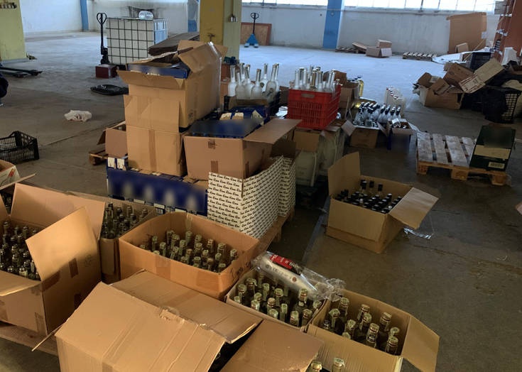 Στο πλαίσιο των ερευνών εντοπίστηκαν το παράνομο «εργαστήριο» παραγωγής και εμφιάλωσης των ποτών αυτών, καθώς και ο χώρος αποθήκευσης της αιθυλικής αλκοόλης, που διαχειρίζονταν τα μέλη της οργάνωσης.