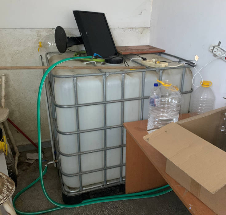 - πκτώ πλαστικοί περιέκτες, οι οποίοι περιείχαν συνολικά 54 λίτρα αλκοολούχου υγρού, το οποίο περιείχε αιθυλική αλκοόλη άγνωστης προέλευσης,