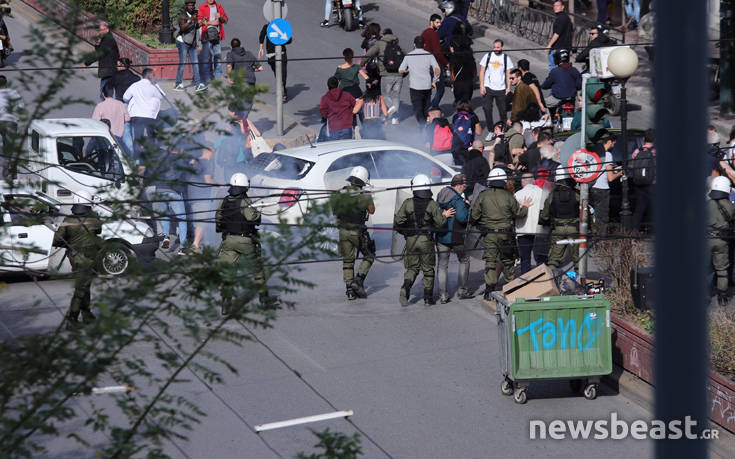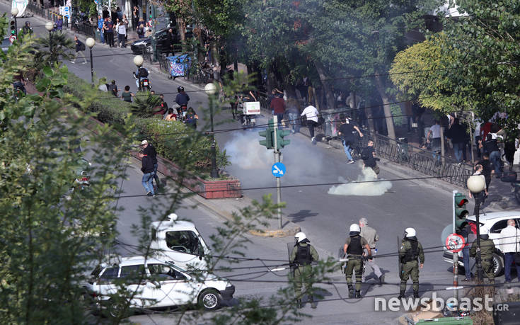 Νωρίτερα, επικράτησε ένταση έξω από το Οικονομικό Πανεπιστήμιο Αθηνών, με την αστυνομία να κάνει χρήση κρότου λάμψης και χημικά για να απωθήσει ομάδα νεαρών. Νωρίτερα, οι νεαροί είχαν επιτεθεί έξω από την ΑΣΟΕΕ με πέτρες και διάφορα άλλα αντικείμενα εναντίον αστυνομικών των ΜΑΤ.