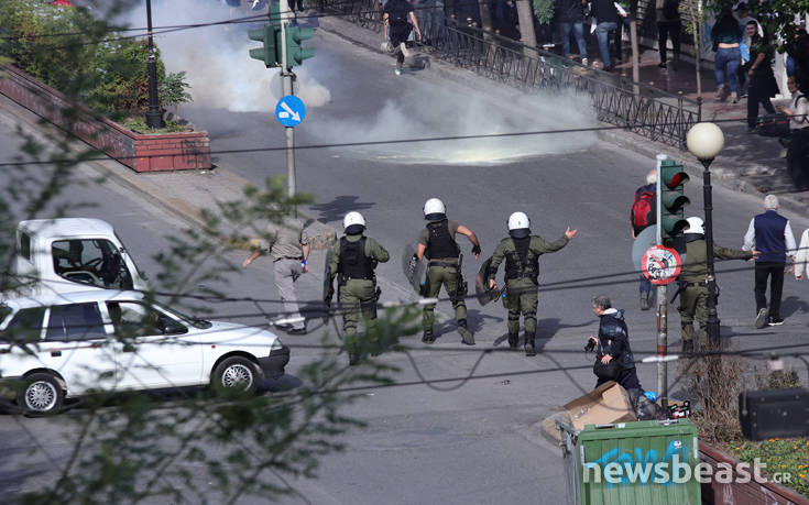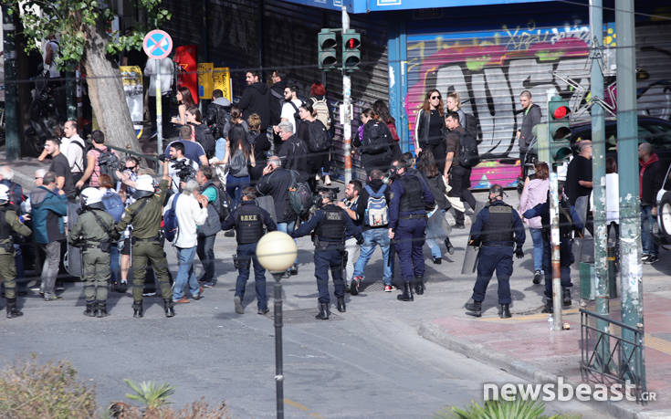 Οι αστυνομικοί των ΜΑΤ πέταξαν χημικά και άρχισαν να σπρώχνουν για να διώξουν τον κόσμο που είχε συγκεντρωθεί έξω από την ΑΣΟΕΕ.