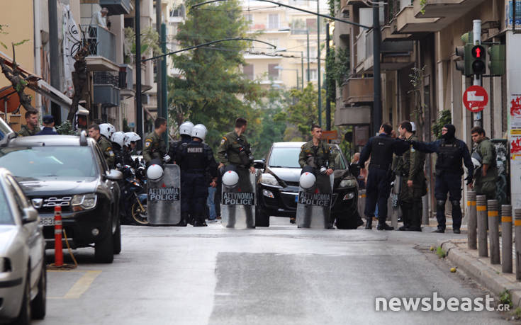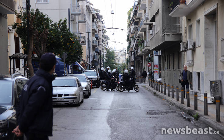 Το κτίριο βρίσκεται στην οδό Μπουμπουλίνας 42 και η περιοχή είναι αποκλεισμένη, ενώ στο σημείο βρίσκονται ισχυρές αστυνομικές δυνάμεις.