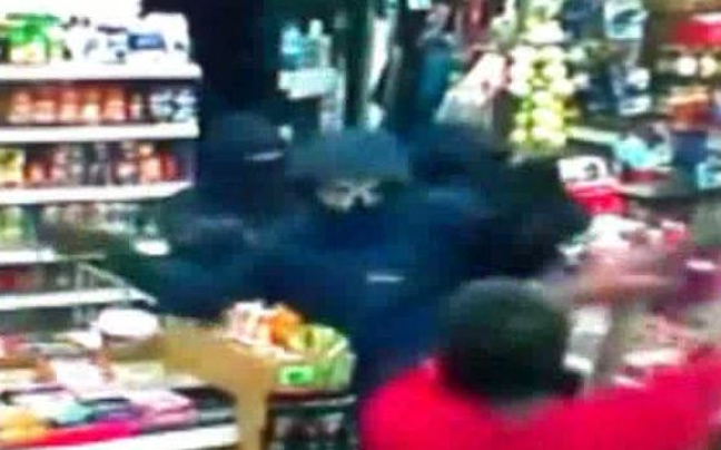 Το περιστατικό, το οποίο καταγράφηκε από το σύστημα παρακολούθησης του μαγαζιού, σημειώθηκε στις 10 το βράδυ της Κυριακής, όταν δύο άντρες που φορούσαν μάσκες μπήκαν οπλισμένοι στο κατάστημα.