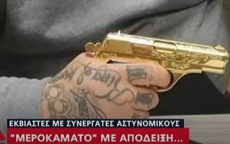 Φωτογραφίες ντοκουμέντο από το κύκλωμα εκβιαστών του Πειραιά στις οποίες πρωταγωνιστούν χρυσά όπλα, σκυλιά και τατουάζ έφερε στο φως της δημοσιότητας το κεντρικό δελτίο ειδήσεων του Alpha το βράδυ της Τετάρτης.