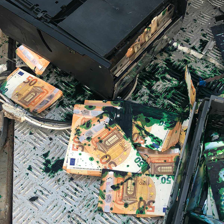 «Παθόντες» αυτή τη φορά ήταν οι ληστές που ανατίναξαν τα ξημερώματα το ΑΤΜ στη Στούπα Μεσσηνίας, καθώς η λεία τους ήταν χαρτονομίσματα των 50 και των 20 ευρώ βαμμένα με πράσινο χρώμα.