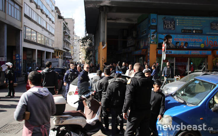 Άγρια συμπλοκή σημειώθηκε στο κέντρο της Αθήνας, στη συμβολή των οδών Σαπφούς και Μενάνδρου, στην περιοχή της Ομόνοιας, το μεσημέρι της Πέμπτης.