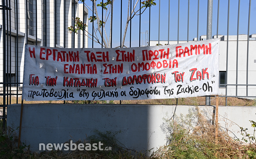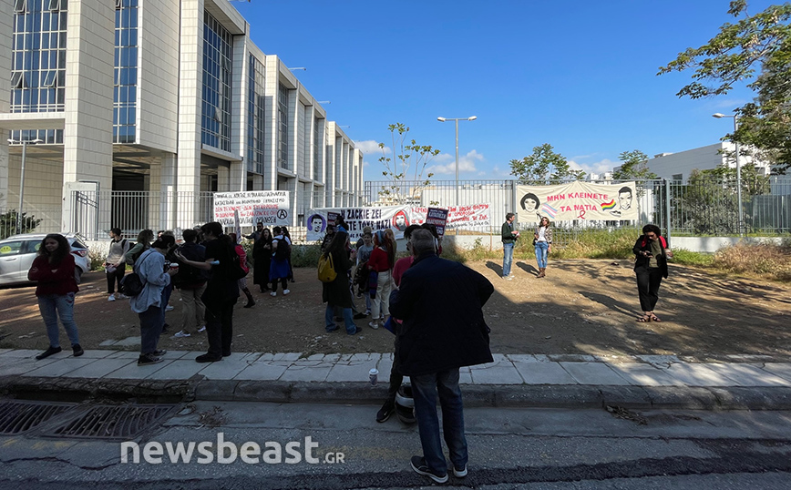 Έξω από το Μικτό Ορκωτό Δικαστήριο της Αθήνας έχει συγκεντρωθεί κόσμος που ζητά την τιμωρία των δραστών που δολοφόνησαν τον Ζακ Κωστόπουλο.