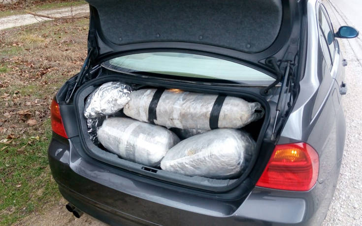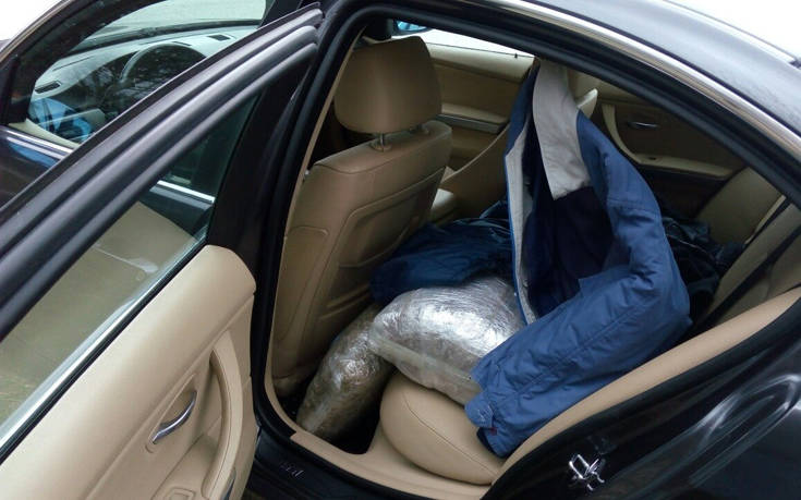 - 12 δέματα με ακατέργαστη κάνναβη, συνολικού βάρους 76 κιλών και 900 γραμμαρίων, τα οποία βρέθηκαν στο χώρο των αποσκευών και στα πίσω καθίσματα του οχήματος,