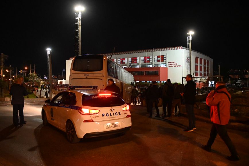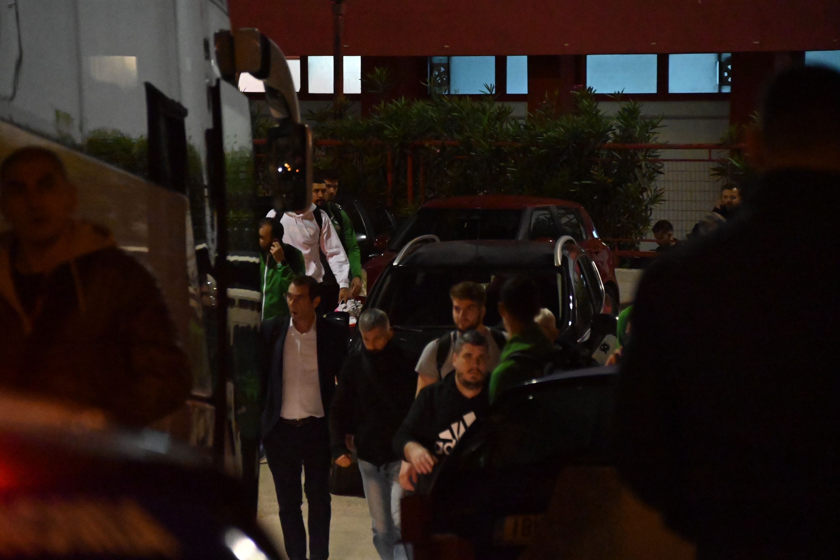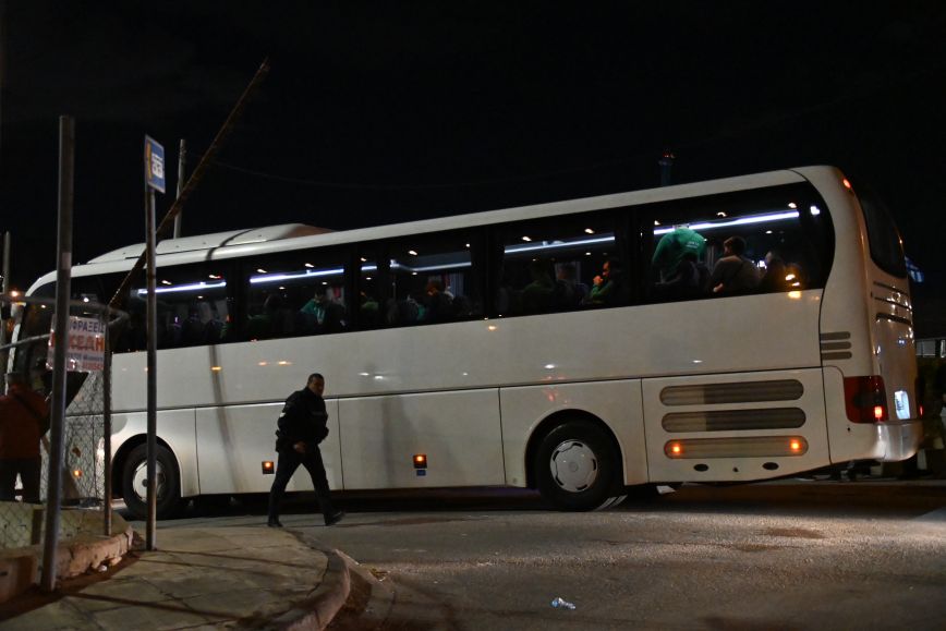 Οι πάνω από 400 οπαδοί που βρισκόντουσαν εντός του γηπέδου βγαίνουν εκτός του χώρου και αφού τους γίνεται ο απαραίτητος σωματικός έλεγχος με τα χέρια τους ψηλά, μπαίνουν στις κλούβες των ΜΑΤ και μεταφέρονται κατευθείαν στην ΓΑΔΑ.