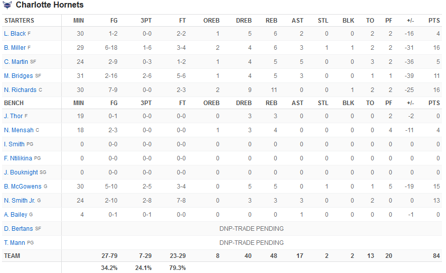 Όσον αφορά τους ηττημένους, πρώτος σκόρερ ήταν ο Νικ Ρίτσαρντς με 16 πόντους και 11 ριμπάουντ, όσους δηλαδή πέτυχε και ο Μπράντον Μίλερ.
