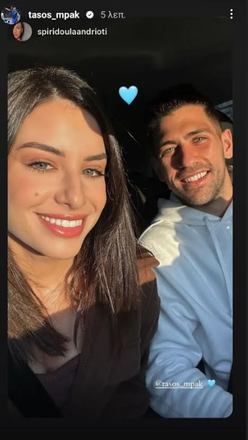 Συγκεκριμένα, η επιχειρηματίας και influencer δημοσίευσε σε story στο Instagram μια κοινή τους φωτογραφία και έβαλε μια μπλε καρδούλα δίπλα στο όνομα του αγαπημένου της.