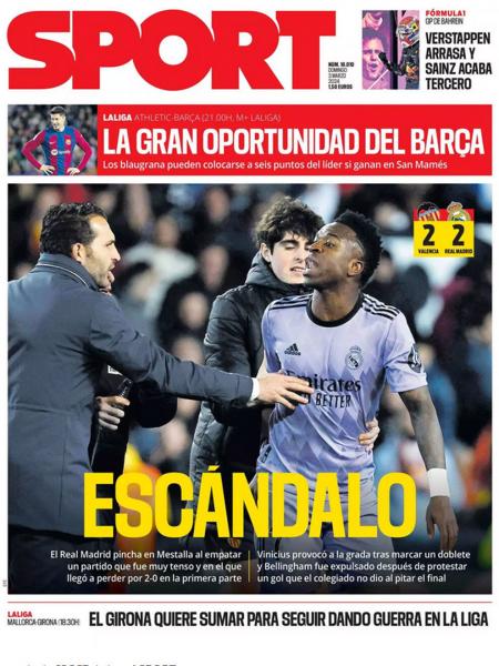 Ακόμα και η καταλανική εφημερίδα Sport γράφει στο σημερινό πρωτοσέλιδό της για σκάνδαλο, όπως και η Marca και η AS της Μαδρίτης, ενώ η Super Deporte της Βαλένθια ειρωνεύεται έχοντας τον τίτλο «Iστορία».