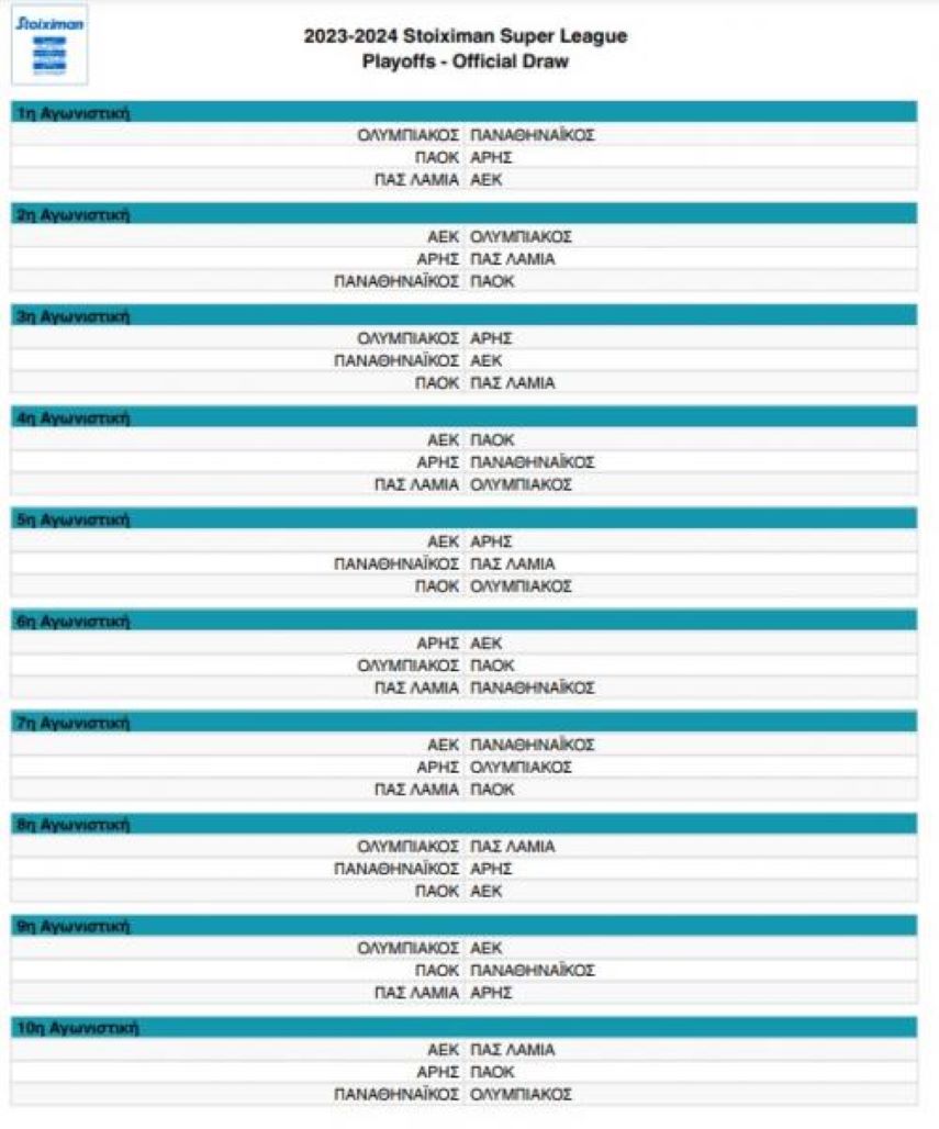 Την Κυριακή 10 Μαρτίου θα έχουμε την πρώτη αγωνιστική.