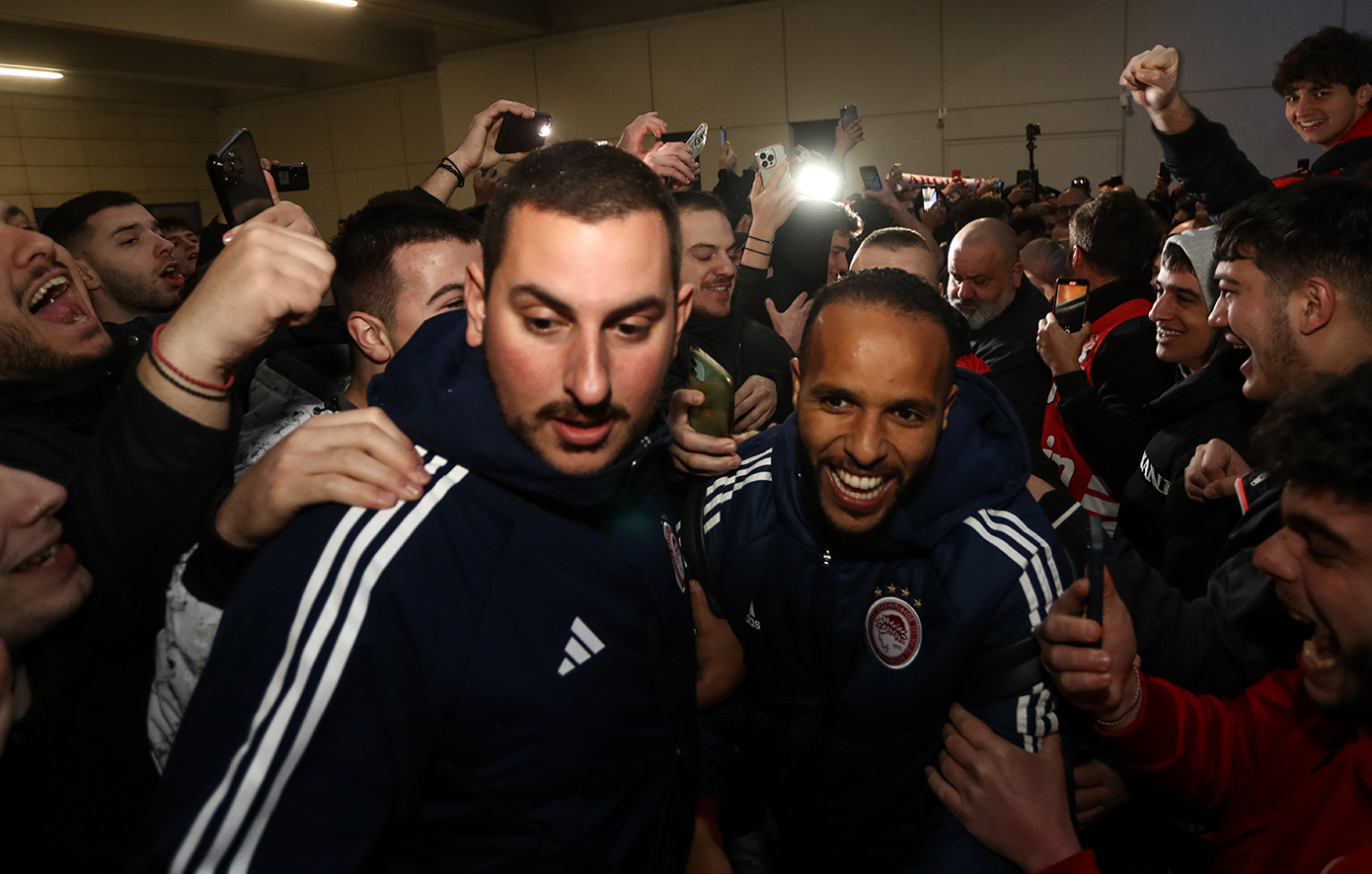 Εικόνες από το ταξίδι της επιστροφής της ομάδας του Ολυμπιακού