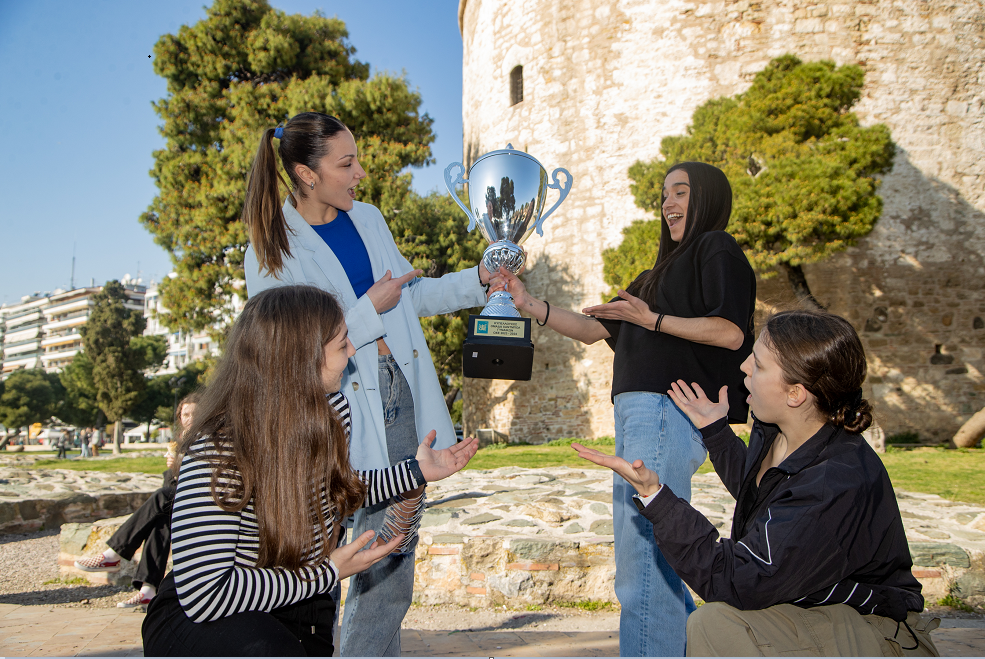 Έτσι, τα μέλη της ομάδας πόζαραν μπροστά από το γνωστό αξιοθέατο της Θεσσαλονίκης, καθώς κατέκτησαν την έβδομη κούπα.
