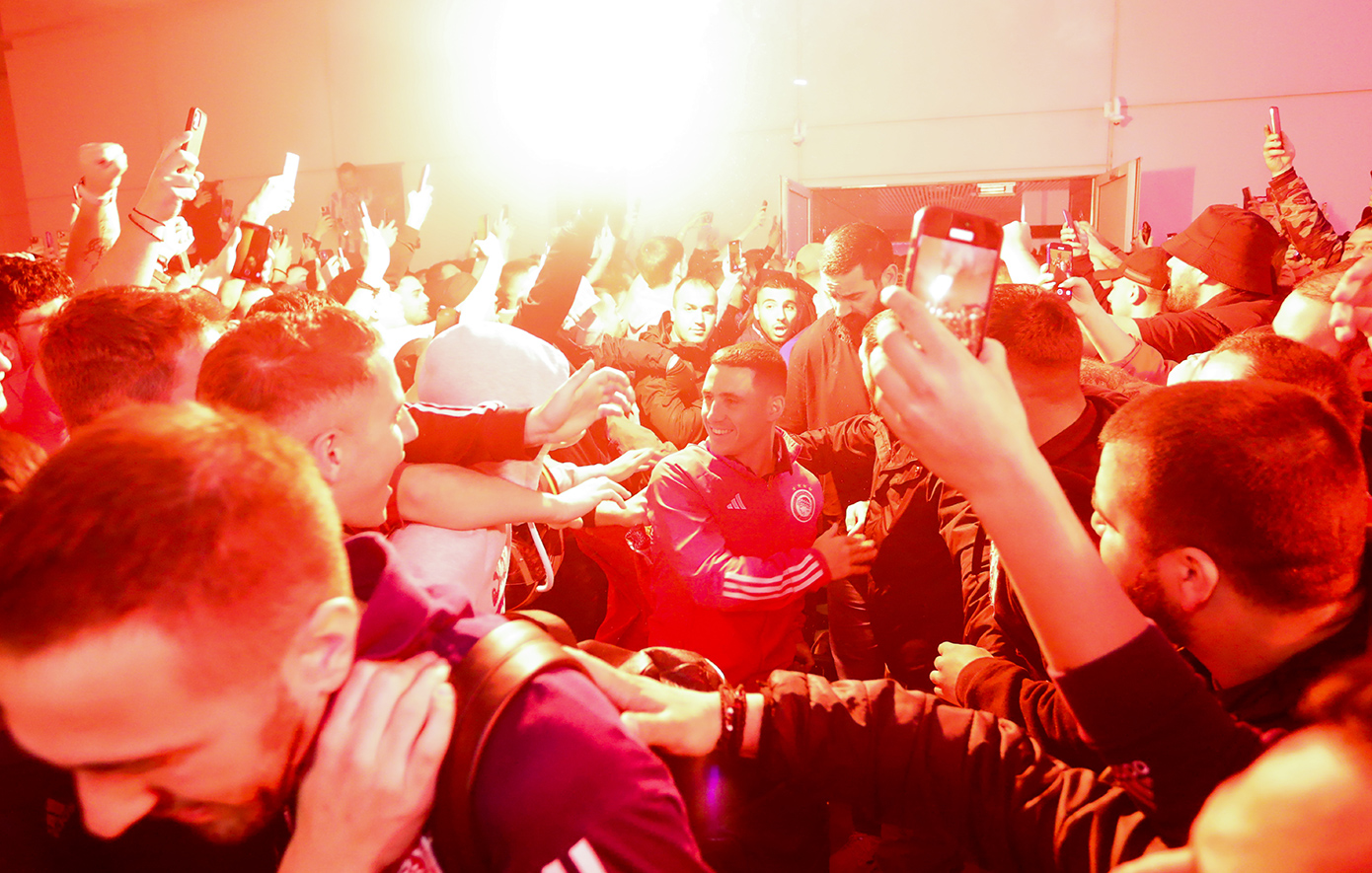 Απίθανες στιγμές στο αεροδρόμιο «Ελευθέριος Βενιζέλος», όπου πάνω από 3 χιλιάδες οπαδοί του Ολυμπιακού υποδέχθηκαν την αποστολή της ομάδας μετά τη θρυλική πρόκριση στα ημιτελικά του Conference League.