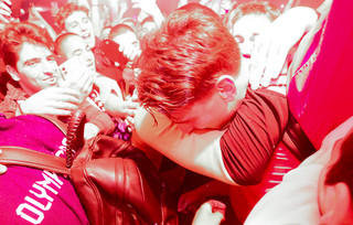Ξεχωριστή αποθέωση γνώρισε ο Κωνσταντίνος Τζολάκης, ο οποίος χθες το βράδυ απέκρουσε τρία πέναλτι στη συγκεκριμένη διαδικασία μετά την παράταση, και πανευτυχής κρατούσε ένα καπνογόνο που πήρε από τους οπαδούς.