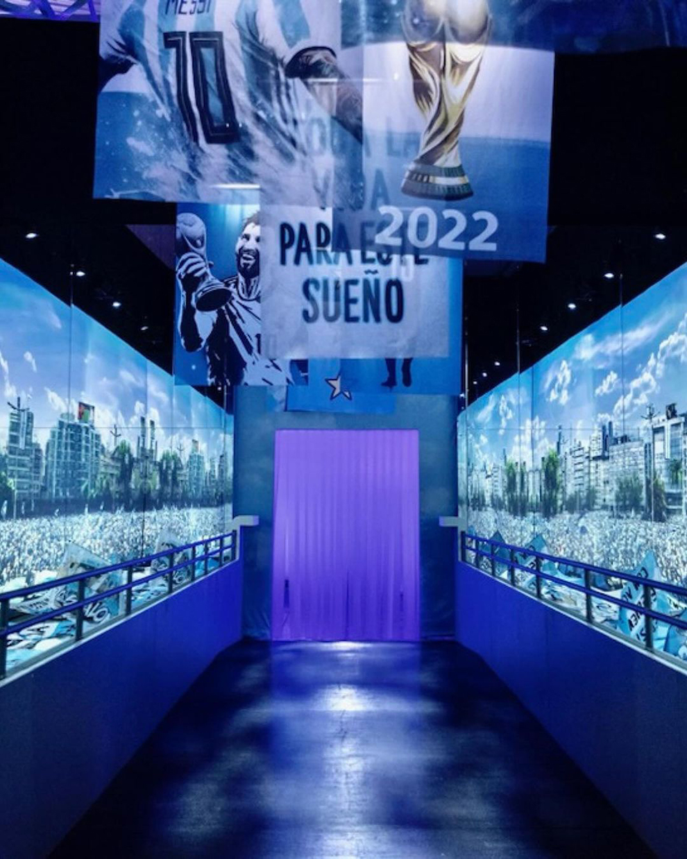 Το μαγικό ταξίδι στον κόσμο του Μέσι ξεκινάει από μια αίθουσα που ο θεατής βρίσκεται σε ένα πούλμαν και στους τοίχους βλέπει τους ξέφρενους πανηγυρισμούς στους δρόμους του Μπουένος Άιρες για την κατάκτηση του Μουντιάλ 2022 στο Κατάρ.