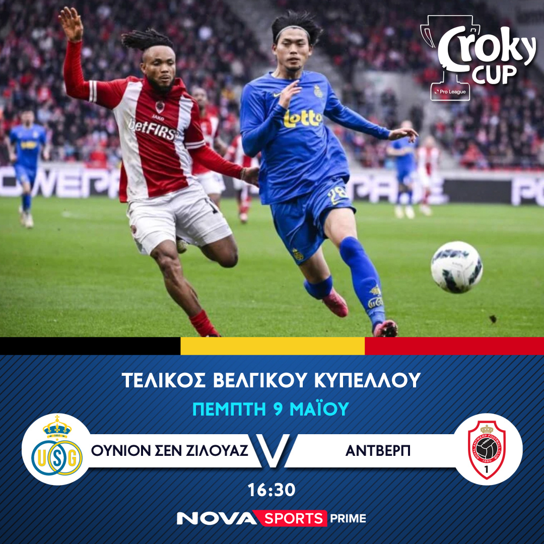 16:30 Croky Cup – Τελικός: Ουνιόν Σεν Ζιλουάζ-Αντβέρπ Novasports Prime σε περιγραφή του Άρη Γεωργίου