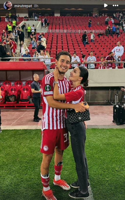 Ο αργεντινός μέσος των ερυθρολεύκων μετά το τέλος της αναμέτρησης και κατά τη διάρκεια των πανηγυρισμών, έπεσε στην αγκαλιά της συντρόφου του, Μιράντα, η οποία βρίσκεται συνεχώς στο πλευρό του.