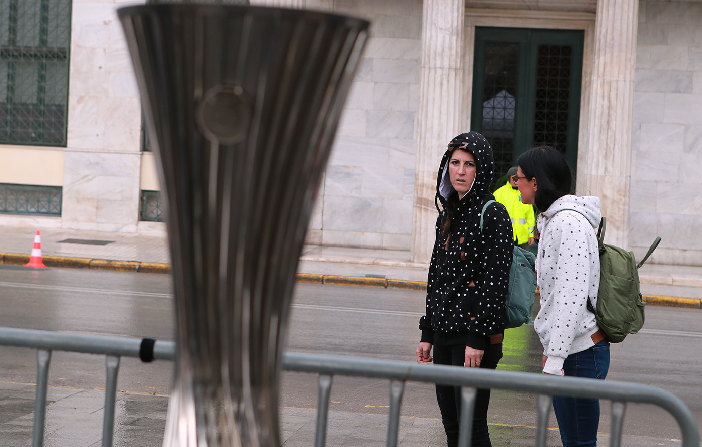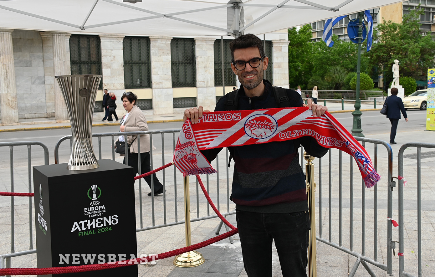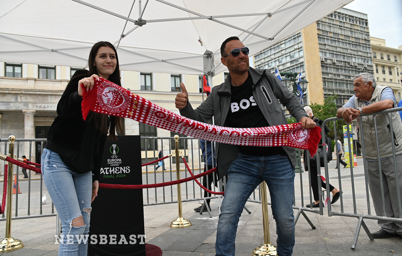 Το τρόπαιο του Europa Conference League το οποίο θα διεκδικήσει ο Ολυμπιακός με αντίπαλο την Φιορεντίνα στο OPAP Arena στις 29 Μαΐου, βρίσκεται στην πλατεία Κοτζιά από τις 09:00 το πρωί της Παρασκευής (10/05).