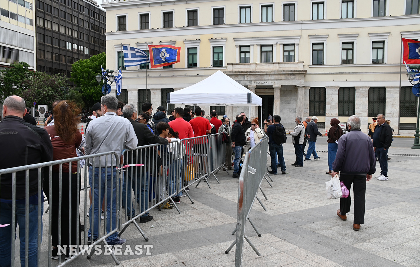 Από νωρίς το πρωί φίλαθλοι του Ολυμπιακού έφτασαν στο σημείο για να φωτογραφηθούν με το κύπελλο το οποίο θα βρίσκεται στην πλατεία Κοτζιά έως τις 20:00 το βράδυ.