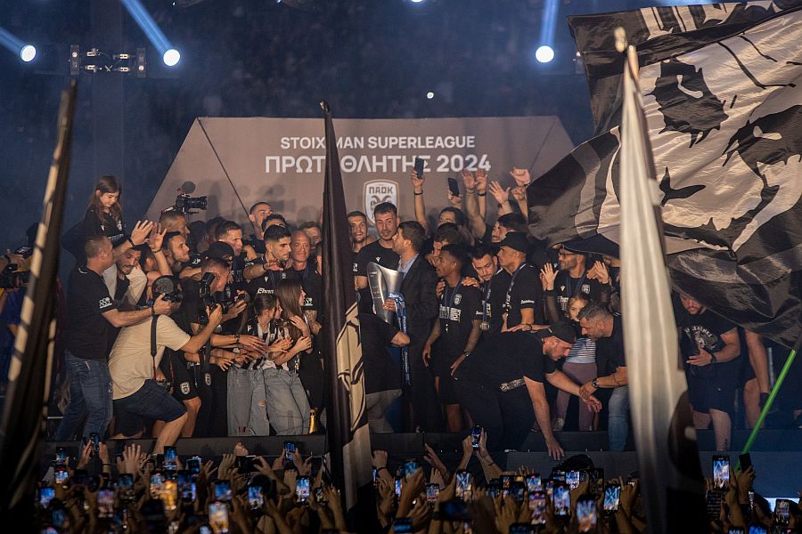 Ο ΠΑΟΚ είναι πρωταθλητής Ελλάδας για 4η φορά στην ιστορία του μετά το 2-1 επί του Άρη και στην Τούμπα βρέθηκαν δεκάδες χιλιάδες οπαδοί του για να πανηγυρίσουν την απονομή του τροπαίου στην ομάδα του Ραζβάν Λουτσέσκου.