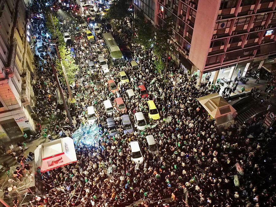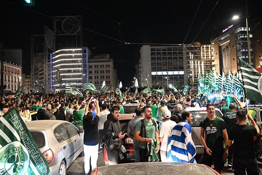Στον…έβδομο ουρανό είναι όλοι οι φίλαθλοι του Παναθηναϊκού που με τη λήξη της κόρνας της γραμματείας του τελικού του Final 4 στην Uber Arena, ξεχύθηκαν να πανηγυρίσουν στους δρόμους στο κέντρο της Αθήνας.