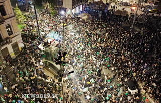 Αρκετές γειτονιές της Αθήνας –με αποκορύφωμα τους Αμπελόκηπους και την Ομόνοια– γέμισαν κόσμο που πανηγύριζε για τη σπουδαία νίκη.