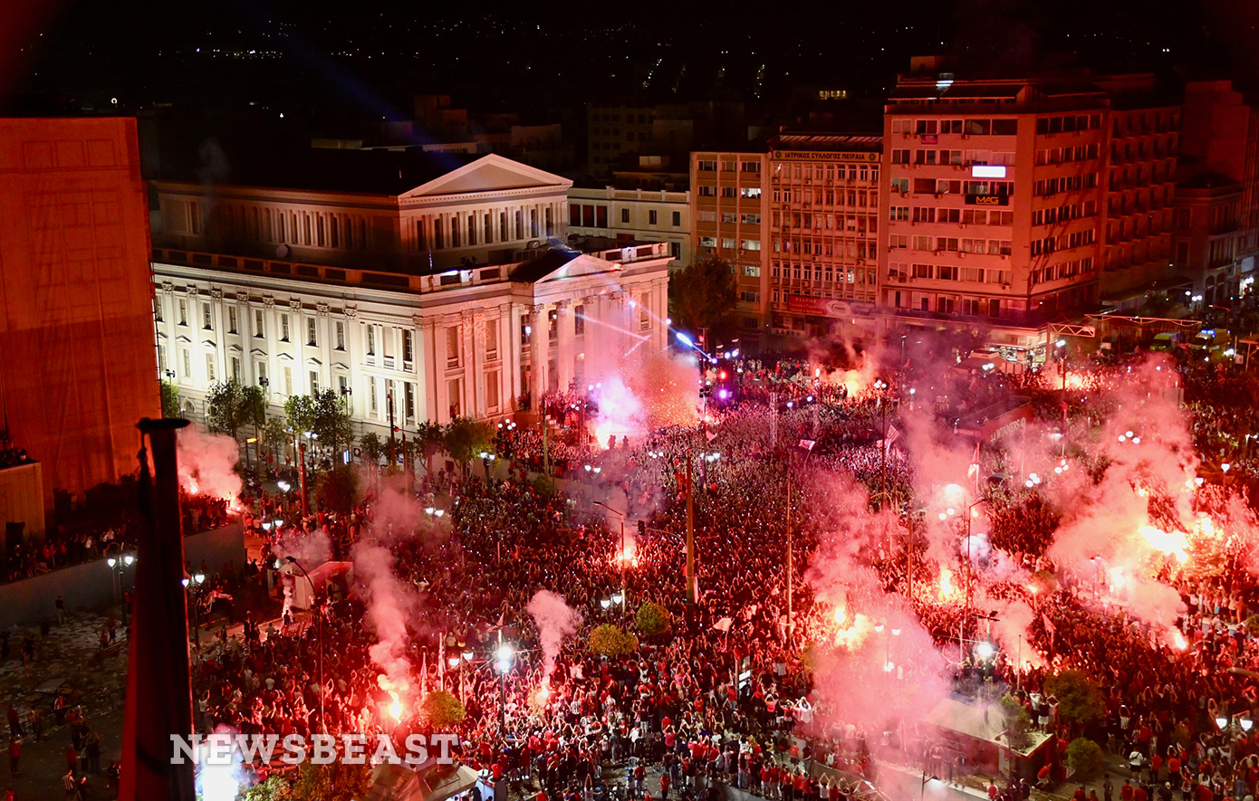 Ο Θρύλος μετά τη λήξη της αναμέτρησης βρέθηκε στον τόπο του, στον Πειραιά, όπου μαζί με τους οπαδούς του γιόρτασε σε έξαλλους ρυθμούς σηκώνοντας το τρόπαιο στον ουρανό δημιουργώντας μαγικές εικόνες σε ένα σπουδαίο βράδυ για την ελληνική ομάδα.