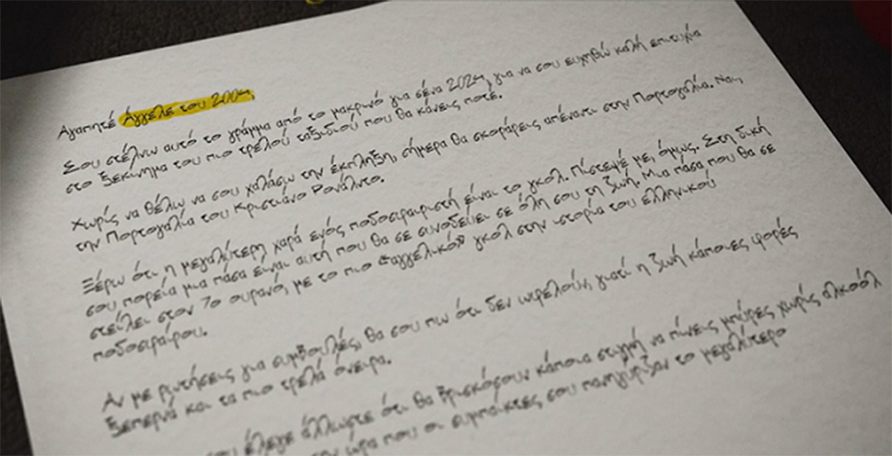 Το «Γράμμα στον νεότερο εαυτό μου» με πρωταγωνιστή τον Άγγελο Μπασινά, είναι το πρώτο από 6 αφιερωματικά βίντεο που ετοίμασε ο ΟΠΑΠ για την 20η επέτειο από το έπος της Πορτογαλίας. Έξι Legends του 2004, που «σφράγισαν» τη νικηφόρα πορεία της Εθνικής μας Ομάδας προς την κορυφή της Ευρώπης, γράφουν στον νεότερο εαυτό τους και μας παίρνουν μαζί τους σε ένα ταξίδι στον χρόνο γεμάτο έντονες αναμνήσεις και συναισθήματα. Στις ίδιες ημερομηνίες των έξι ιστορικών αγώνων, ζούμε ξανά, 20 χρόνια μετά, τις ανεπανάληπτες στιγμές του 2004 μέσα από τα βίντεο του ΟΠΑΠ.