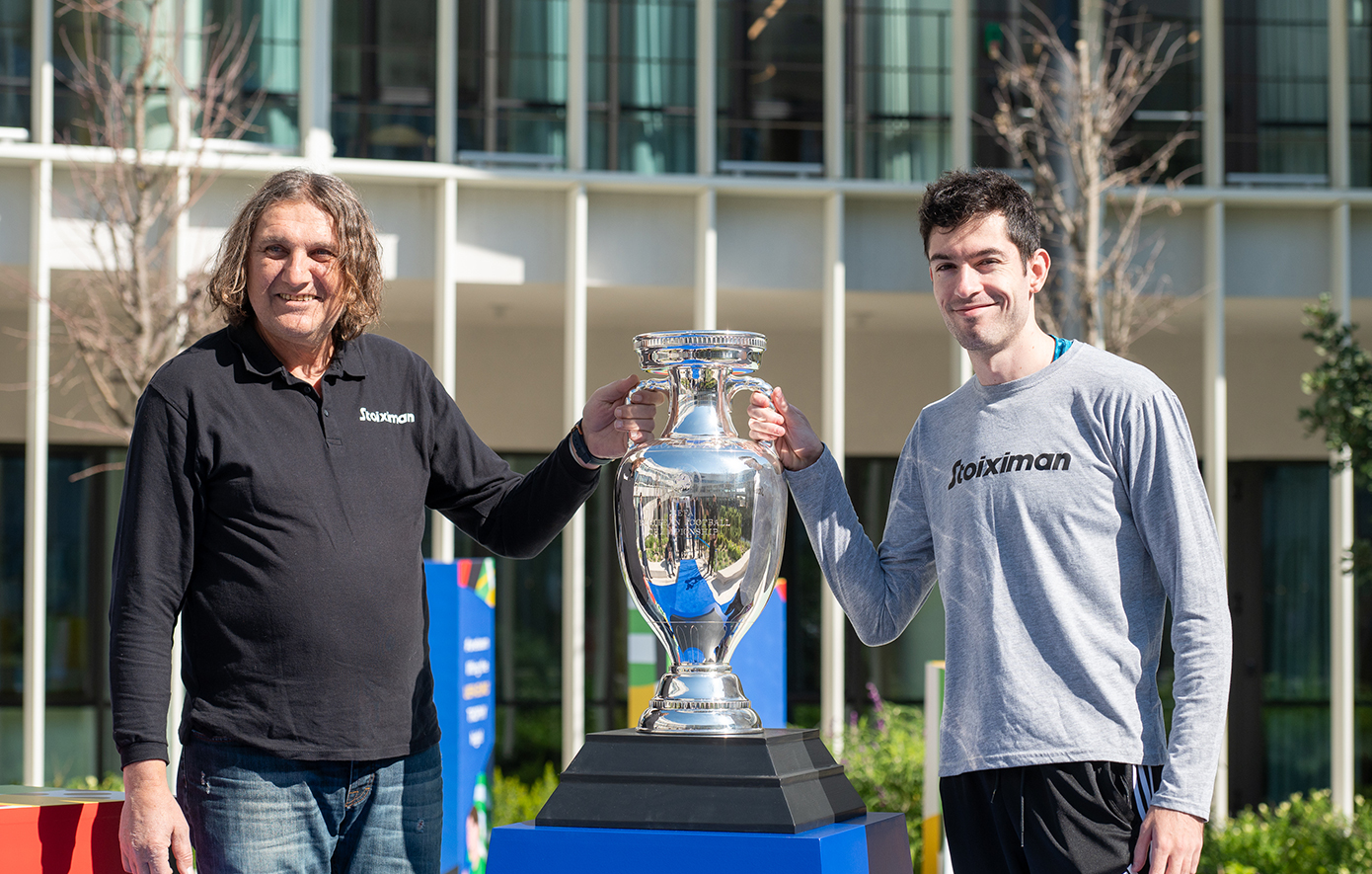 Ανεξίτηλη έμεινε στις μνήμες εκατοντάδων Ελλήνων φιλάθλων η 21η Μαρτίου, όταν η Stoiximan έφερε το Κύπελλο του UEFA EURO 2024™ στο Ζάππειο Μέγαρο. Το ελληνικό κοινό είχε την ευκαιρία να θαυμάσει από κοντά και να φωτογραφηθεί με το τρόπαιο, καθώς και με κορυφαίες προσωπικότητες του αθλητισμού και του ποδοσφαίρου σε μία μοναδική γιορτή. Παράλληλα, η Kaizen Gaming φιλοξένησε το τρόπαιο και στο Kaizen Campus, δίνοντας στους εργαζόμενούς της, τους «Kaizeners», τη μοναδική ευκαιρία να απολαύσουν το κύπελλο στα ίδια τους τα γραφεία.