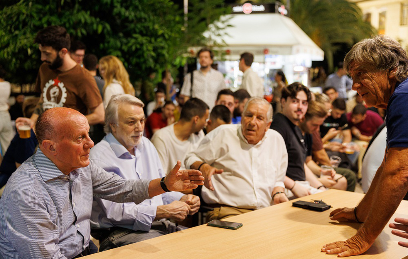 Θωμάς Μαύρος, Μίμης Δομάζος, Αντώνης Αντωνιάδης, Μπάμπης Σταυρόπουλος, Σούλης Παππάς, Βίκτωρας Μητρόπουλος, Αντώνης Κασδοβασίλης και Αντώνης Γλύκας έδωσαν ραντεβού στο κατάστημα ΟΠΑΠ, στην οδό Κυδωνιών 30, για να δουν τον χθεσινό αγώνα του Ευρωπαϊκού Αυστρία-Γαλλία.