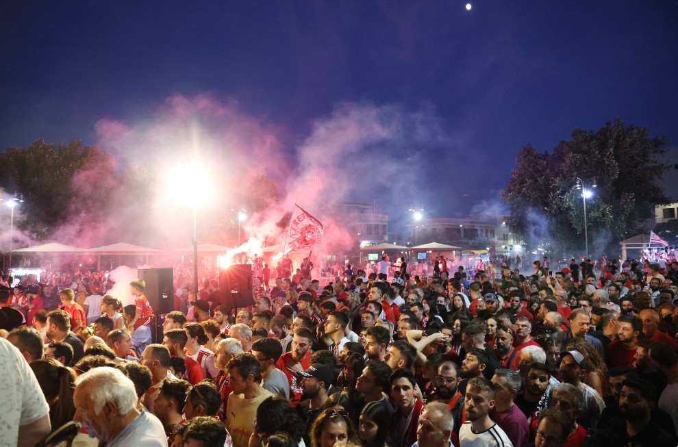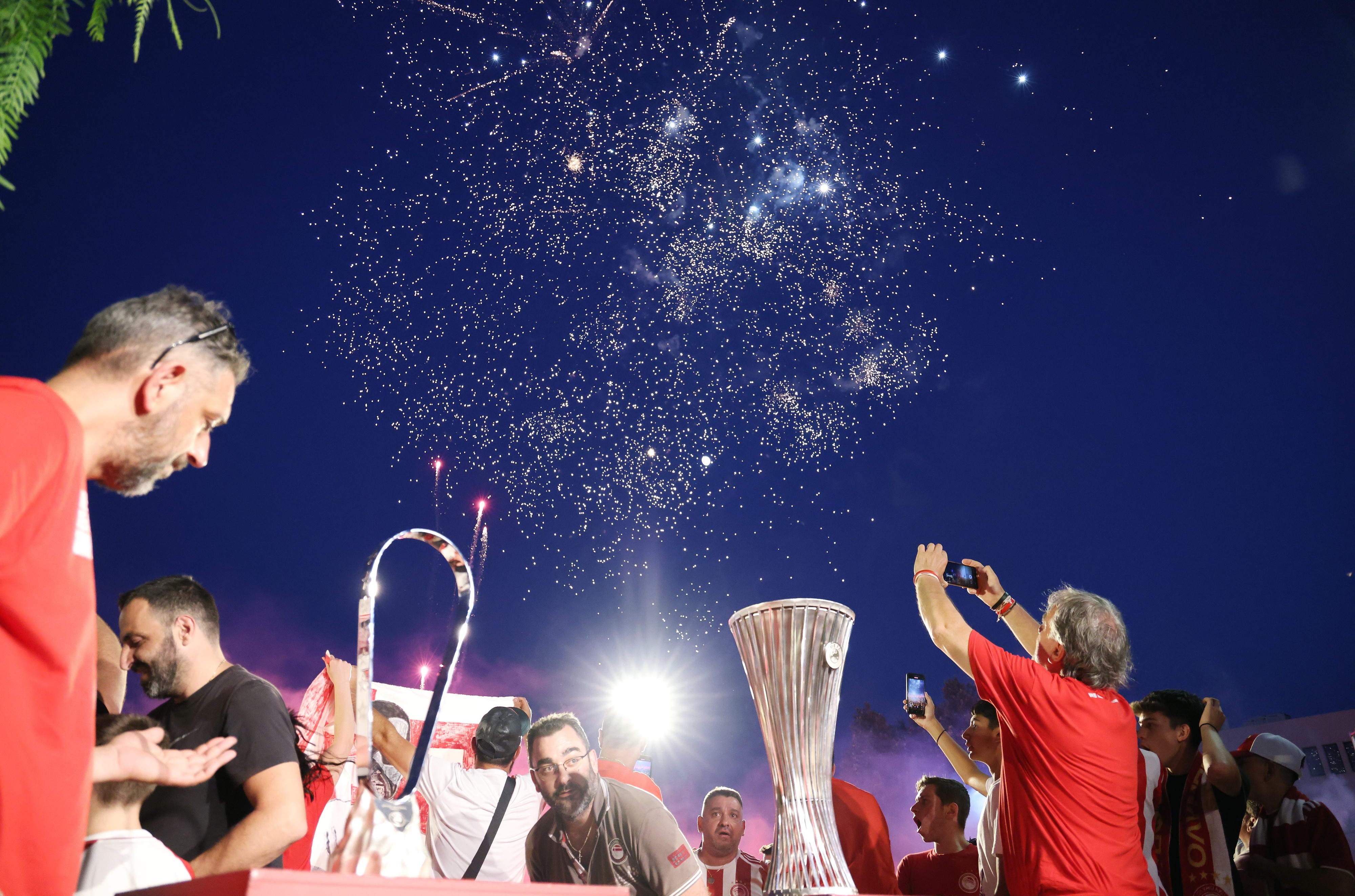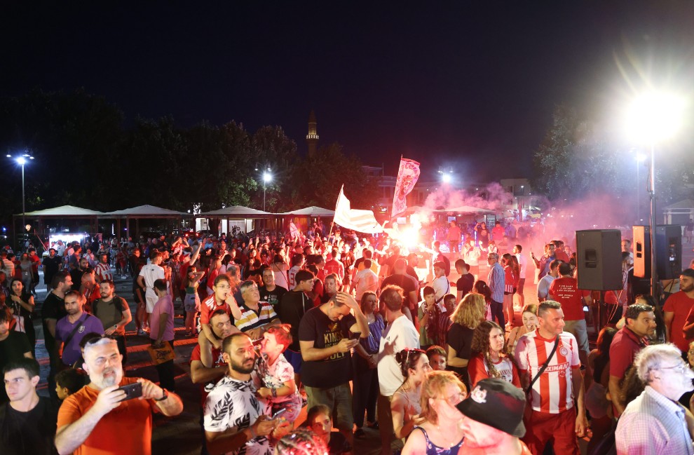 Ό,τι έγινε στις προηγούμενες πόλεις στις οποίες βρέθηκαν τα τρόπαια του Europa Conference League και του Youth League, έγινε και στη Χίο. Οι οπαδοί των «ερυθρόλευκων», δηλαδή, έδωσαν δυναμικό παρών και τραγούδησαν για την ομάδα τους δημιουργώντας όμορφη ατμόσφαιρα.