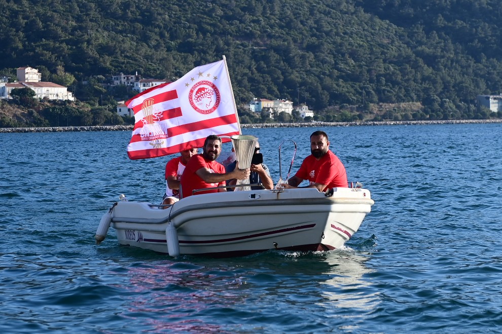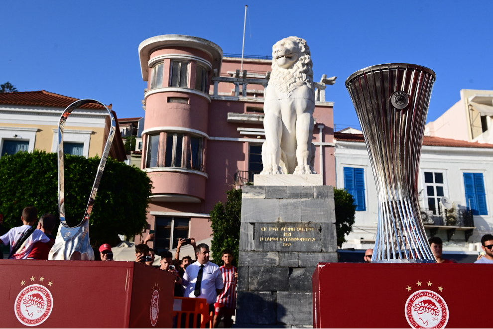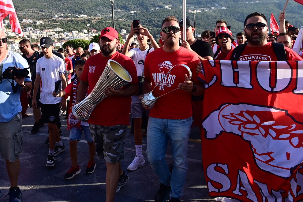 Η περιοδεία των δύο ευρωπαϊκών τροπαίων που κατέκτησε φέτος ο Ολυμπιακός, το Europa Conference League η πρώτη ομάδα και το Youth League η Νέων, συνεχίστηκε στη Σάμο, όπου πλήθος κόσμου έσπευσε για φωτογραφίες.
