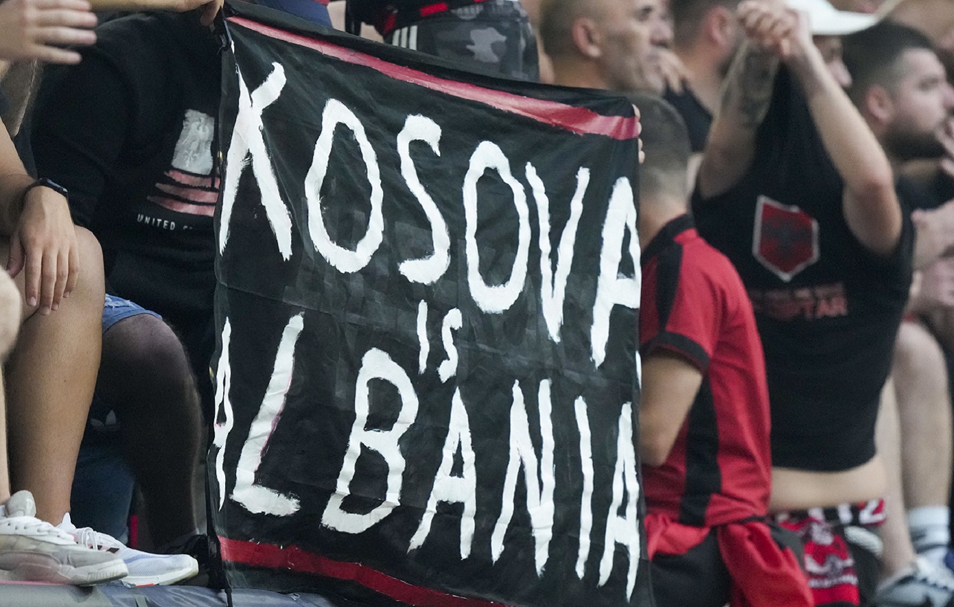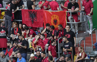 Η αλβανική κερκίδα είχε, πάντως, αρκετά ακόμα εθνικιστικά σύμβολα. Από σημαίες του UCK, της αλβανικής εθνικιστικής πολιτοφυλακής, που δρούσε με αγριότητα στο Κόσοβο, όσο το τελευταίο ήταν μέρος της Γιουγκοσλαβίας, την περίοδο του 1990. Δεν έλειψαν, βέβαια, και οι σημαίες της Μεγάλης Αλβανίας.